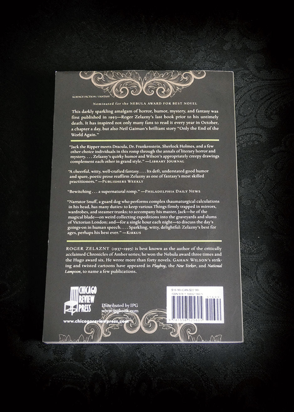 This darkly sparkling amalgam of horror, humor, mystery, and fantasy was first published in 1993 - Roger Zelazny's last book prior to his untimely death. It has inspired not only many fans to read it every year in October, a chapter a day, but also Neil Gaiman's brilliant story "Only the End of the World Again". This book is one of my very favorites, and is an absolute must-have for every fan of October, Vampires, the Old Gods, murder mysteries, and all things Halloween-y! This softcover is brand new and without flaws.
