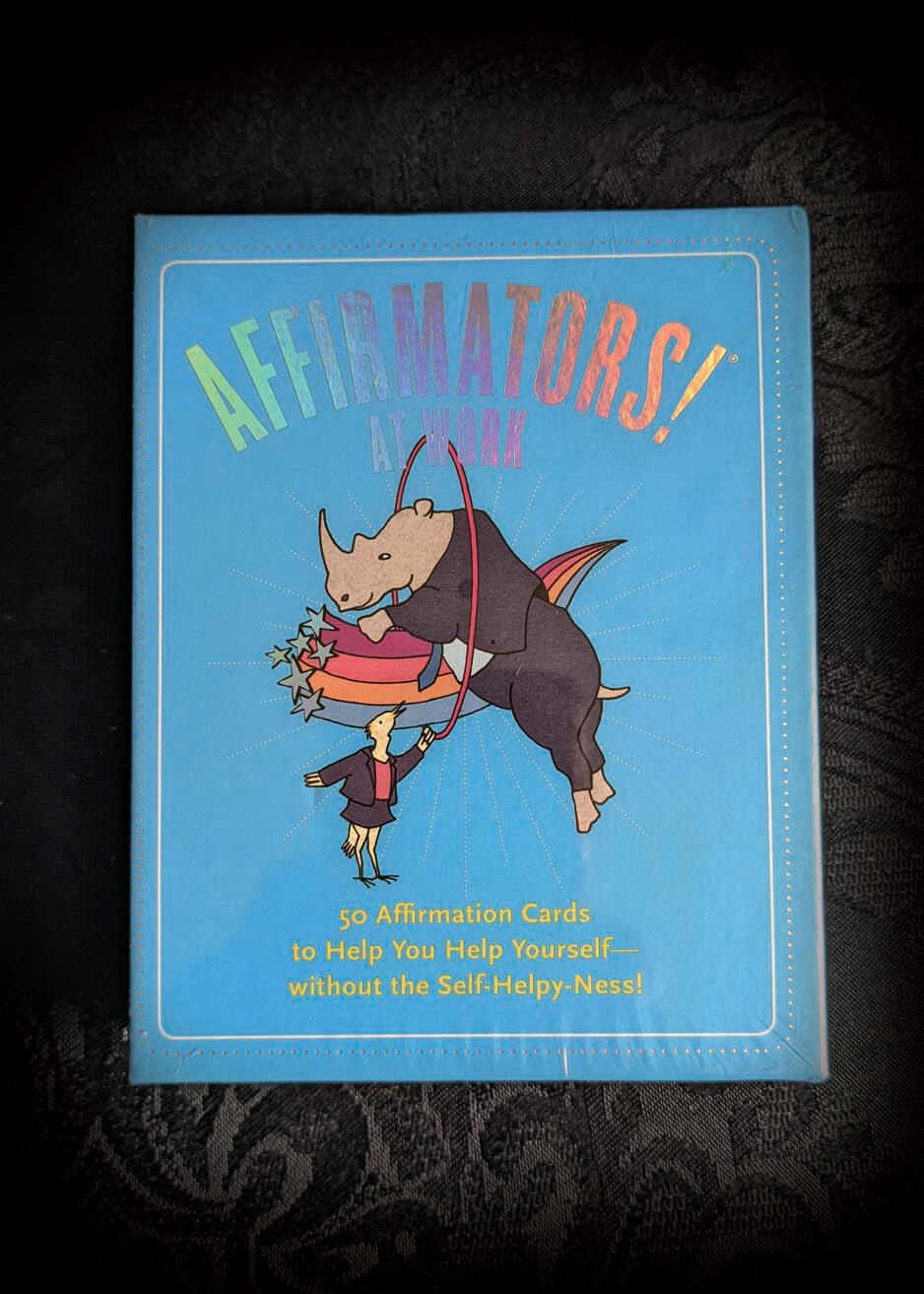 It's been said that making positive statements out loud can radically improve your confidence, productivity, and career satisfaction. We're not ones to argue with science, so we're giving it a shot! Forty cards offer daily affirmations (without the self-helpy self-seriousness) to help you navigate your work-life with minimal drama and a tiny sprinkle of sass. And ten bonus cards deliver a little more Friday to your Mondays! This fine deck is in brand new, factory sealed condition.
