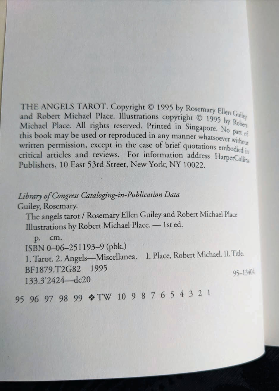 Firmly grounded in Kabbalistic, alchemical, and Christian mysticism, The Angels Tarot companion book soars to the heavens and reveals the mysteries of the tarot, as well as the celestial wonders of the Kingdom of angels. Rosemary Ellen Guiley and Robert Michael Place clearly describe each card in the major and minor arcana - including their relationships with the hierarchies of benevolent and fallen angels and their key attributes and meaning - and show how the entire deck interrelates to form a complete system of powerful personal insight, foresight, and divination. This lovely little book is in previously loved, very good condition.
