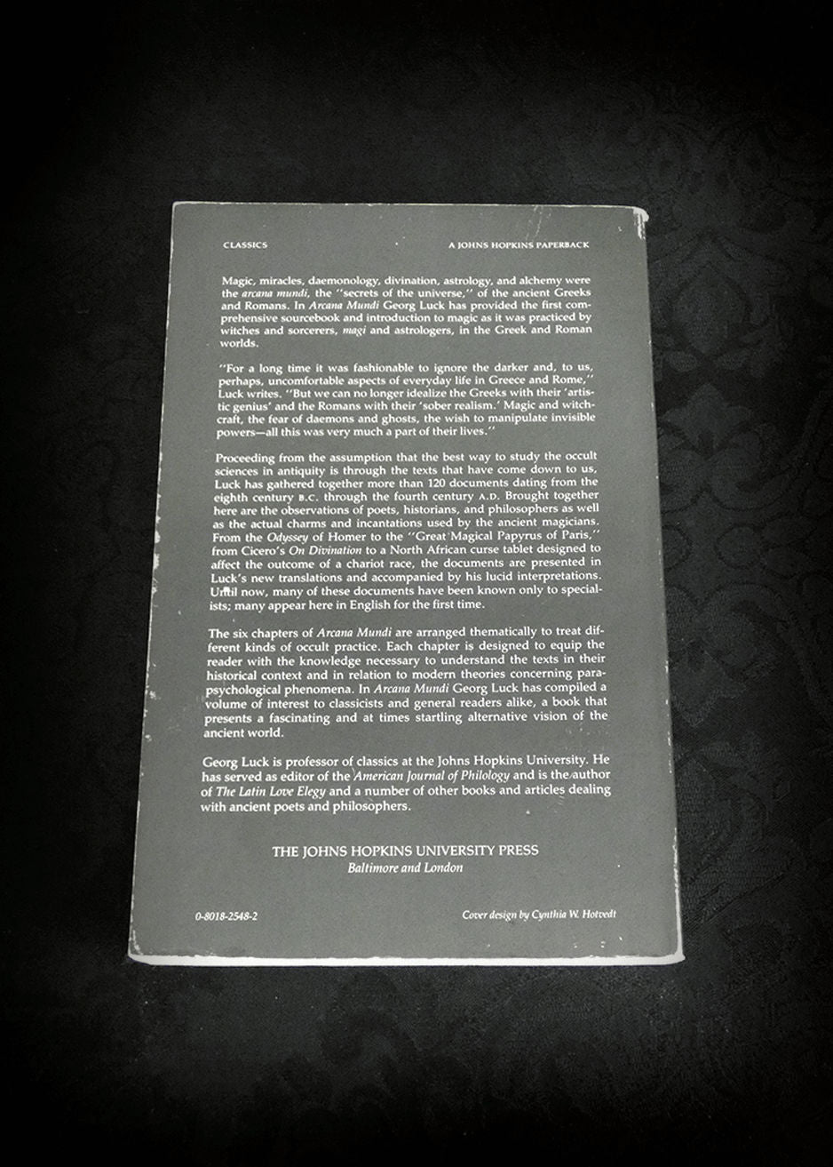 Magic, miracles, daemonology, divination, astrology, and alchemy were the Arcana Mundi (the "secrets of the universe") of the ancient Greeks and Romans. In Arcana Mundi Georg Luck has provided the first comprehensive sourcebook and introduction to magic as it was practiced by witches and sorcerers, magi and astrologers, in the Greek and Roman worlds. Proceeding from the assumption that the best way to study the occult sciences in antiquity is through the texts that have come down to us, Luck has gathered together more than 120 documents dating from the eighth century B.C. through the fourth century A.D. Brought together here are the observations of poets, historians, and philosophers as well as the actual charms and incantations used by the ancient magicians. From the Odyssey of Homer to the "Great Magical Papyrus of Paris," from Cicero's On Divination to a North African curse tablet designed to affect the outcome of a chariot race, the documents are presented in Luck's new translations and accompanied by his lucid interpretations. Until now, many of these documents have been known only to specialists; many appear here in English for the first time. The six chapters of Arcana Mundi are arranged thematically to treat different kinds of occult practice, Each chapter is designed to equip the reader with the knowledge necessary to understand the texts in their historical context and in relation to modern theories concerning para-psychological phenomena. In Arcana Mundi Georg Luch has compiled a volume of interest to classicists and general readers alike, a book that presents a fascinating and at times startling alternative vision of the ancient world. This fantastic book is in previously loved condition with minor shelf wear.