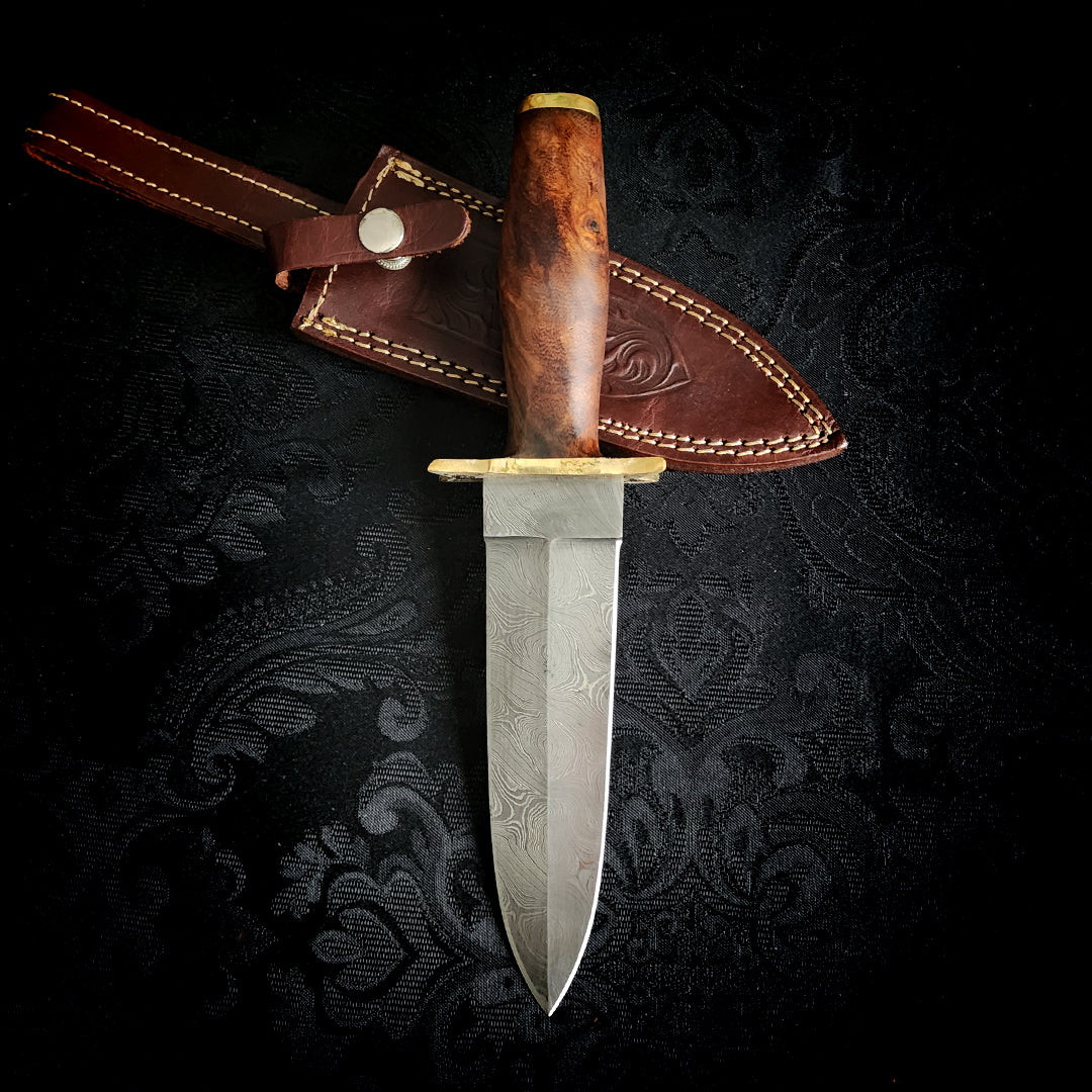 Damascus steel has been used for centuries, and although the original methods and materials have been lost to history, modern damascus maintains a reputation as consistently sharp and bewitchingly beautiful. Multiple layers of two distinct metals are repeatedly forged and folded, resulting in hundereds of layers and requiring hours and hours of careful concentration and incredibly hard work! This blade was given excellent heat treatment and will hold its edge for years to come.