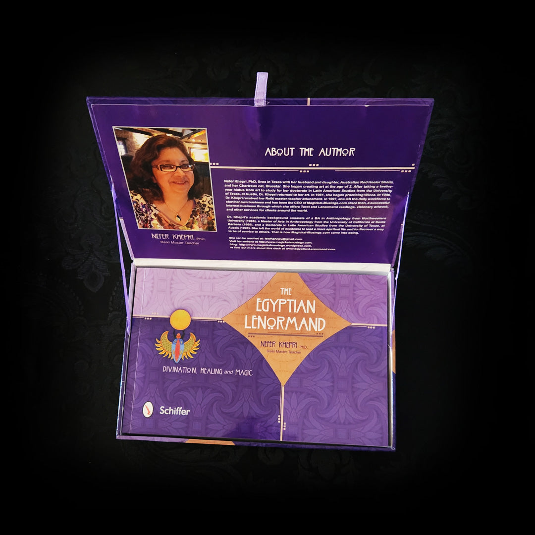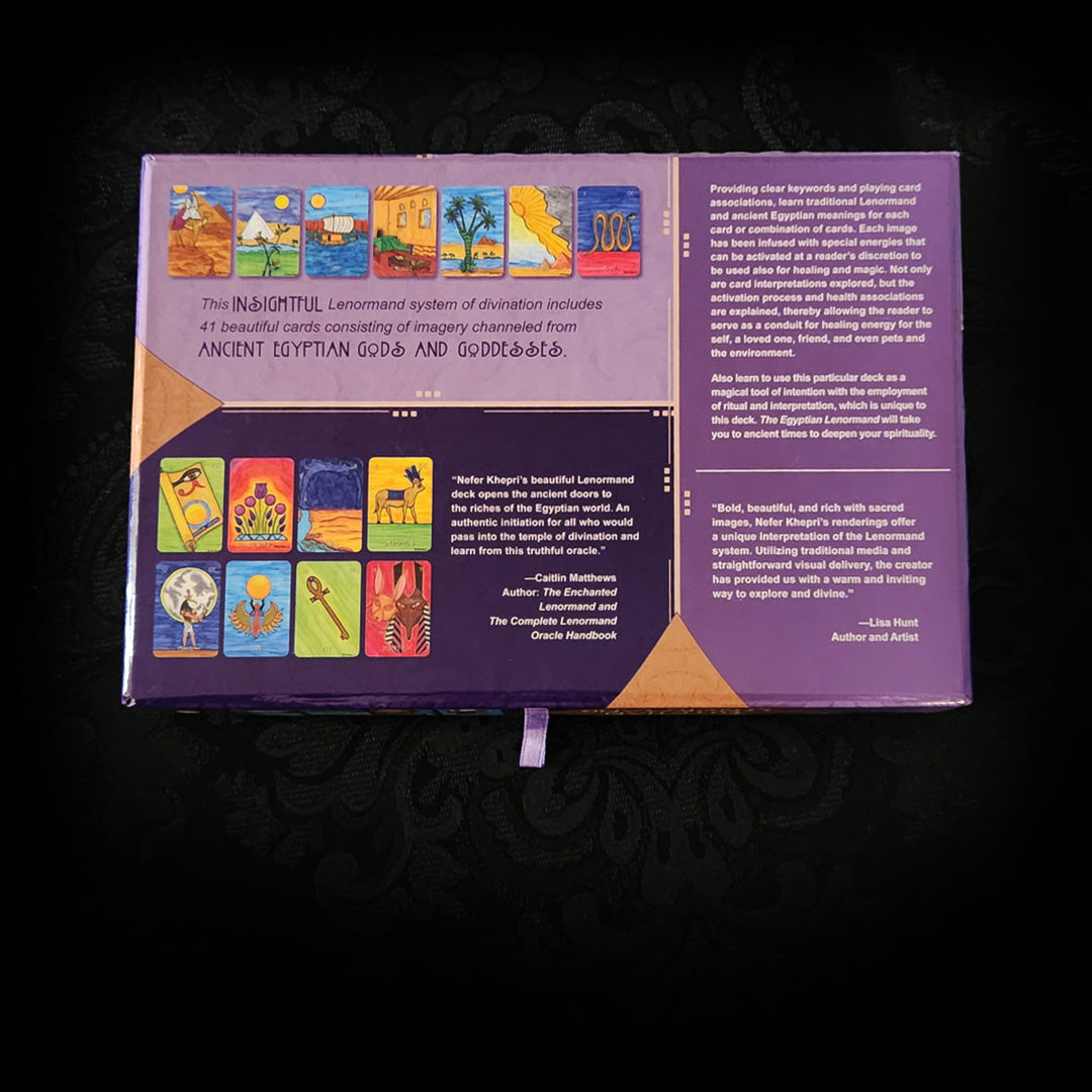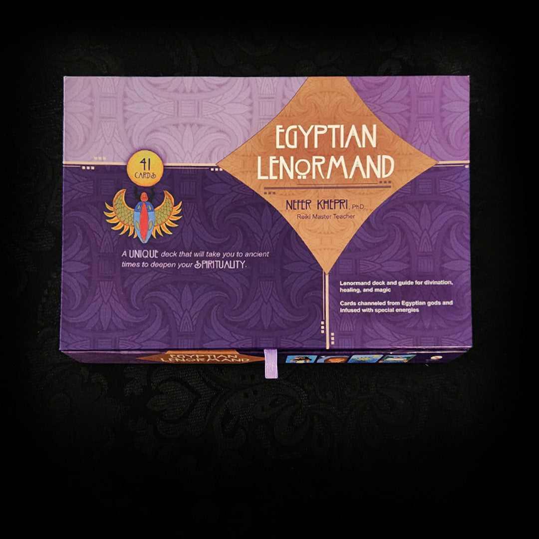 This insightful Lenormand system of divination includes 41 beautiful cards consisting of imagery channeled from ancient Egyptian gods and goddesses. Providing clear keywords and playing card associations with this deck you will learn traditional Lenormand and ancient Egyptian meanings for each card or combination of cards. Each image has been infused with special energies that can be activated at a reader’s discretion to be used also for healing and magic. Not only are card interpretations explored, but the activation process and health associations are explained, thereby allowing the reader to serve as a conduit for healing energy for the self, a loved one, friend, and even pets and the environment. Also learn to use this particular deck as a magical tool of intention with the employment of ritual and interpretation, which is unique to this deck. The Egyptian Lenormand will take you to ancient times to deepen your spirituality.
