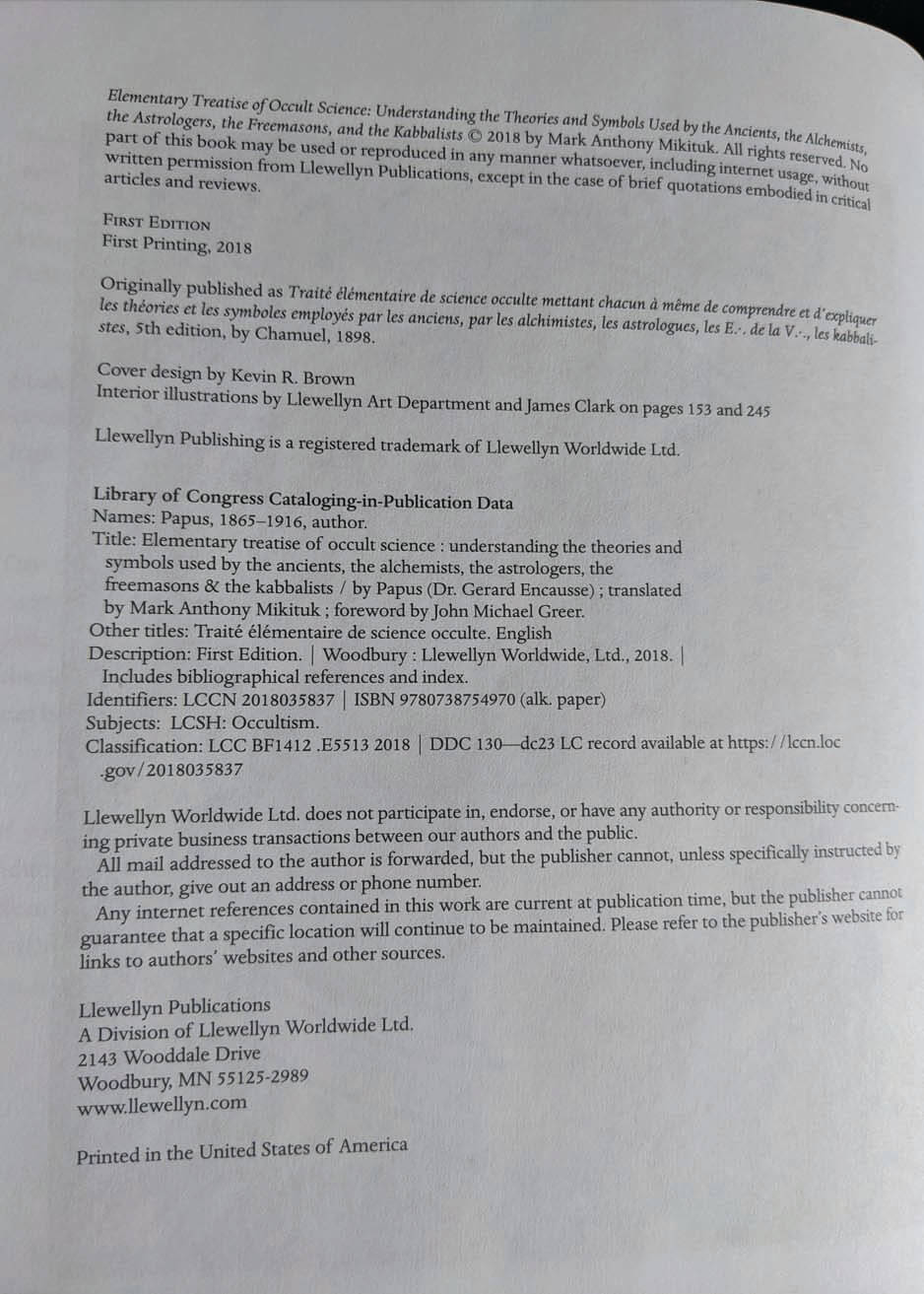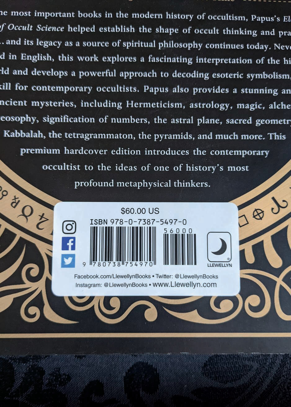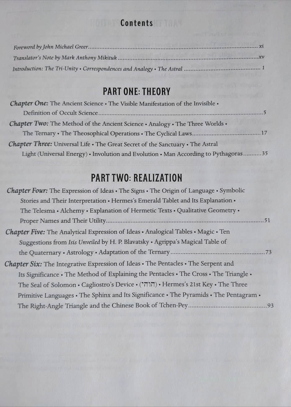 One of the most important books in the modern history of occultism, Papus's Elementary Treatise of Occult Science helped establish the shape of occult thinking and practice for decades...and its' legacy as a source of spiritual philosophy continues today. Never before published in English, this work explores a fascinating interpretation of the history of the world and develops a powerful approach to decoding esoteric symbolism, a crucial skill for contemporary occultists. Papus also provides a stunning analysis of ancient mysteries, including Hermeticism, astrology, magic, alchemy, theosophy, the significance of numbers, the astral plane, sacred geometry, Kabbalah, the tetragrammaton, the pyramids, and much more. This premium hardcover edition introduces the contemporary occultist to the ideas of one of history's most profound metaphysical thinkers and is in like-new condition.