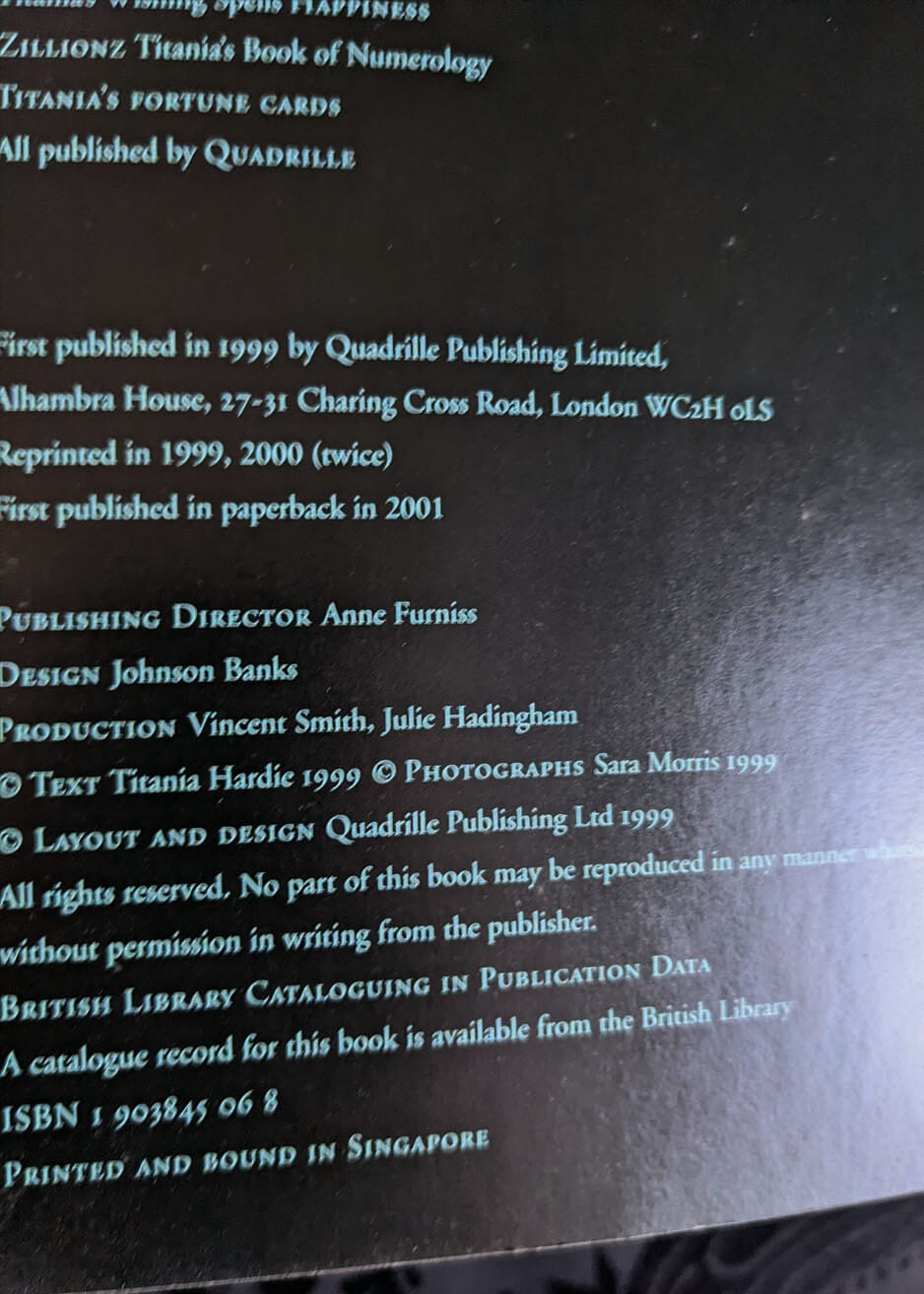 This is white witch Titania Hardie's complete guide to white magic. Based on the 13 moons which make up the witch's calendar, each chapter covers an aspect of magic that is governed by a moon and which has its own color, scent, and number associated with it. Included are chapters on divination, love and fertility magic, herbal and healing magic, and spells for enchanting and disenchanting, for safe travel, for peace at home, and for success. This wonderful, colorful book is in previously loved, fair condition.
