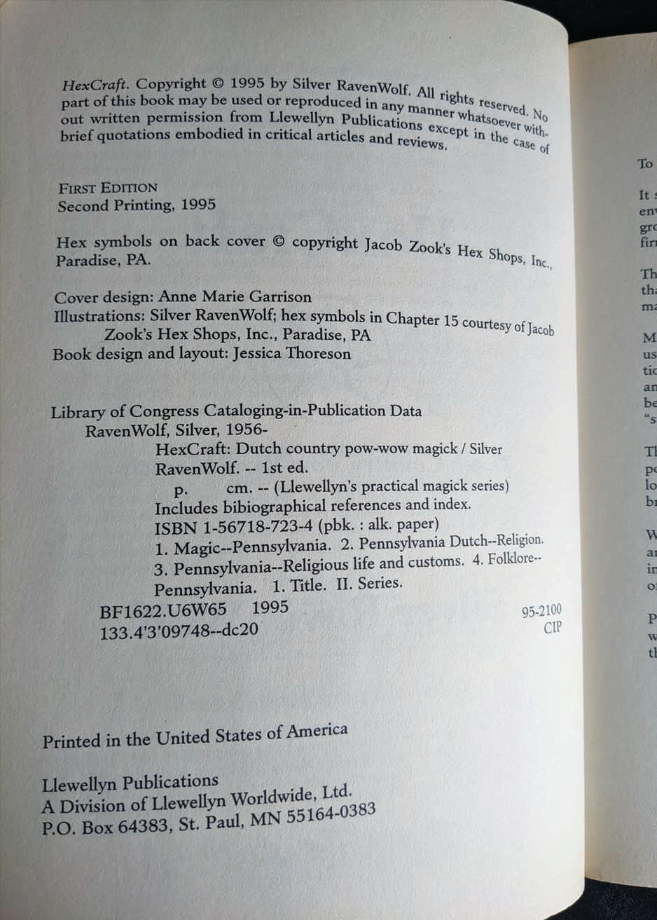 The roots of American witchcraft can be found in a 17th-century settler tradition comprising witchcraft and native American magics. This book analyzes the history and growth of this elusive tradition called Pow-Wow. It brings to life the chants, charms, spells, and healing methods of this heritage that is nearly extinct today. "Hex Craft", also known as Pennsylvania Dutch Country Pow-Wow Magick, is explored through the vivid examples and testimonials of those connected with its occult practices. The book shows how to bring this Earth-honoring culture to life with the step-by-step instruction by Hex Craft-trained author Silver RavenWolf. It presents Pow-Wow's simple nature and easy implementation in a format that encourages individual interpretation and it is in good condition.