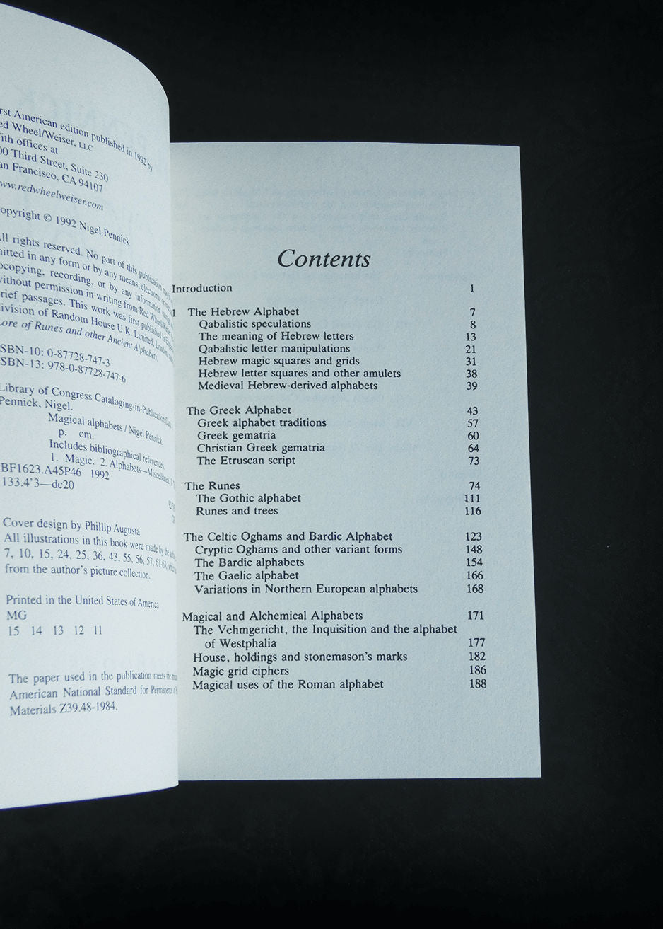 Using the premise that languages and the alphabets that comprise them are metaphorical microcosms of our world, Nigel Pennick demonstrates how various alphabets function as a metaphysical description of reality. Magical alphabets actually enable seekers to experience a transformative process. This inner transformation is one of the main objectives of all esoteric traditions, and it can be accomplished by using any of the alphabet systems described in this book. Pennick's exciting exploration of Western alphabetical systems includes information about the origins of Hebrew and Greek alphabets, Celtic oghams, and medieval and Renaissance magical and alchemical alphabets. His examination uncovers evidence of the widespread use of runes throughout northern and central Europe, as well as the use of letter systems for operative and ceremonial magic. From grid ciphers to numerology to modern uses, this book provides an in-depth study of the magic present in a tool we all use every day - the alphabet. Nigel Pennick is an authority on ancient and modern mysteries, an expert on northern European geomancy, a runemaster, and a practicing geomant. This softcover book is in brand new condition.