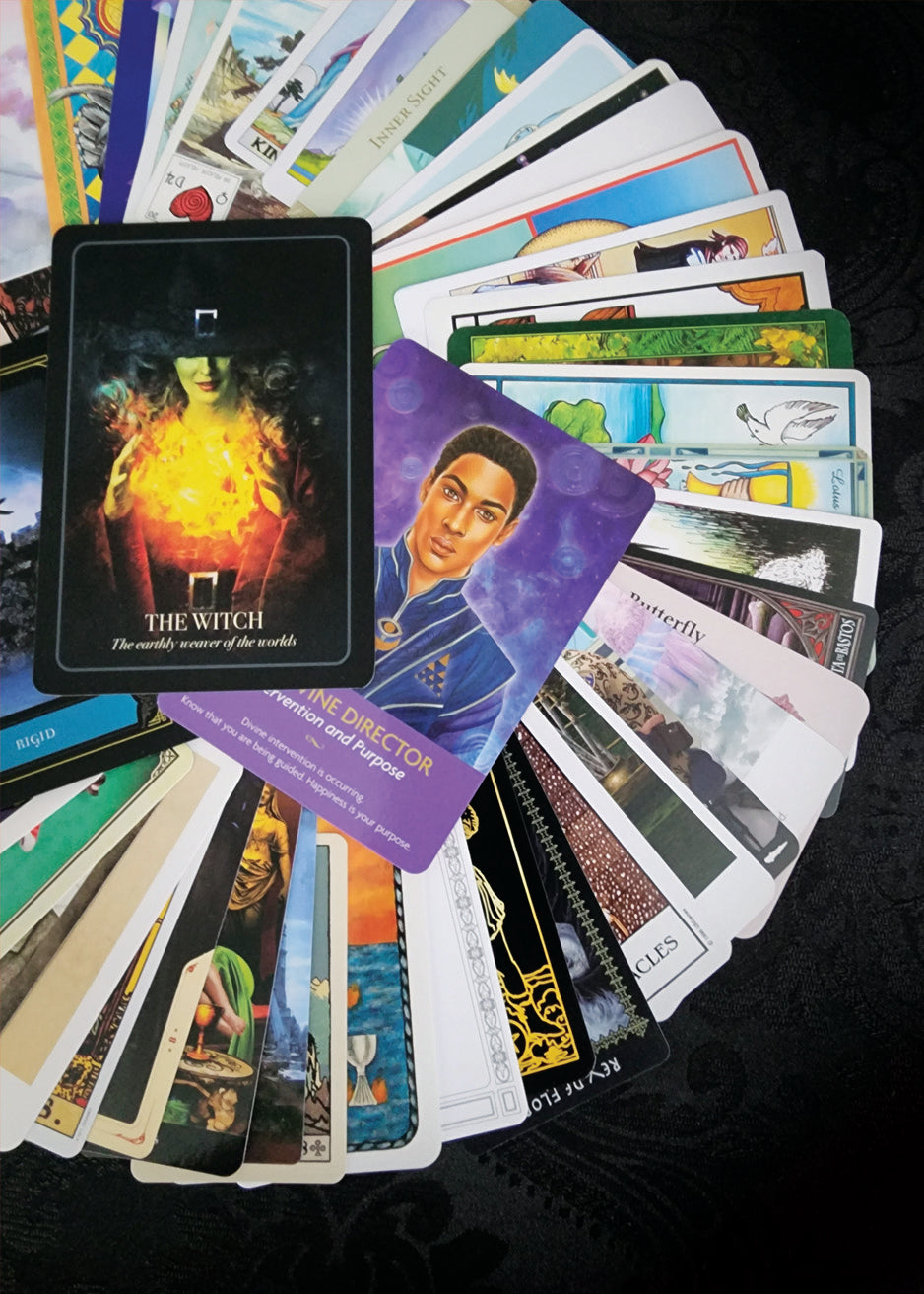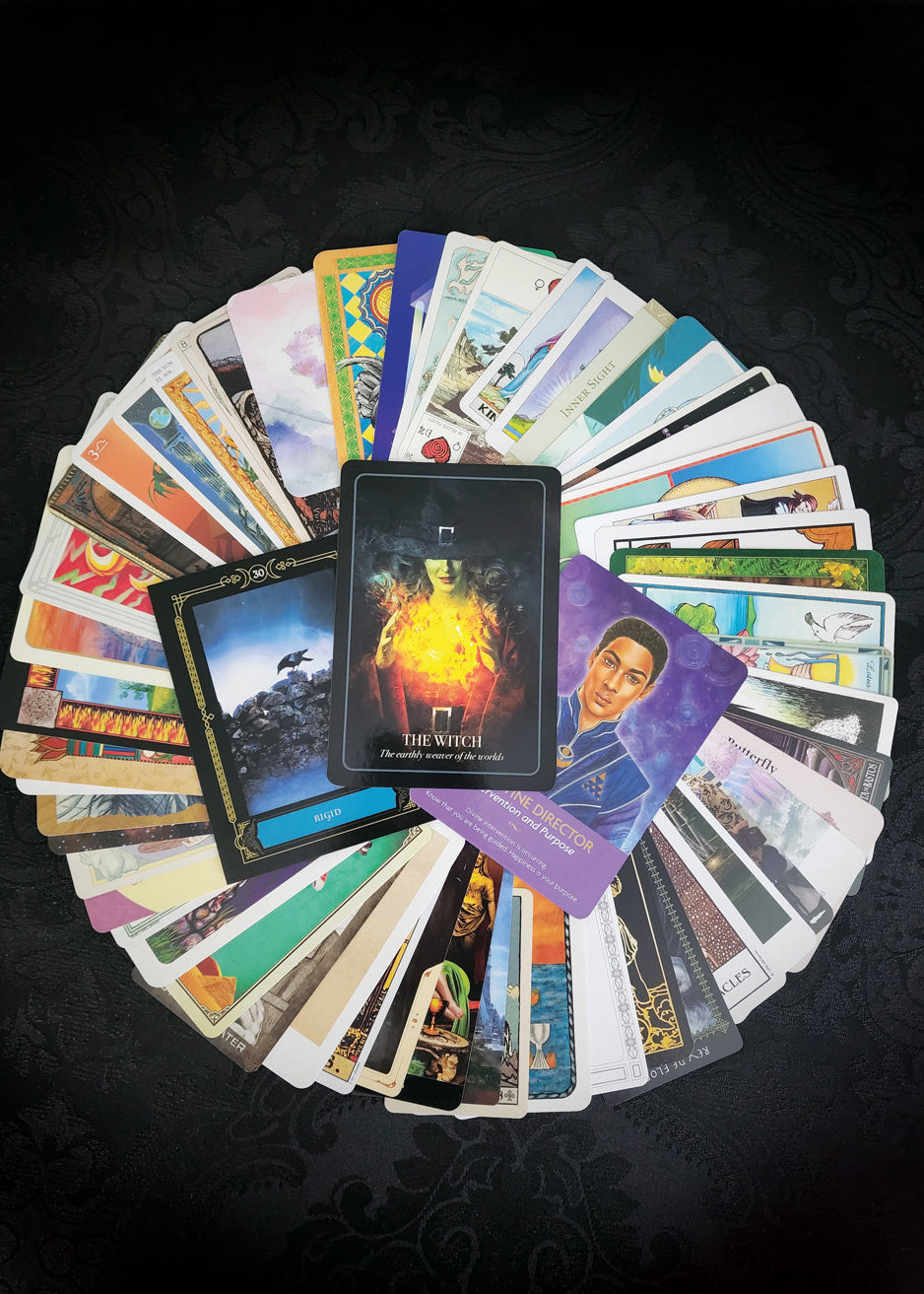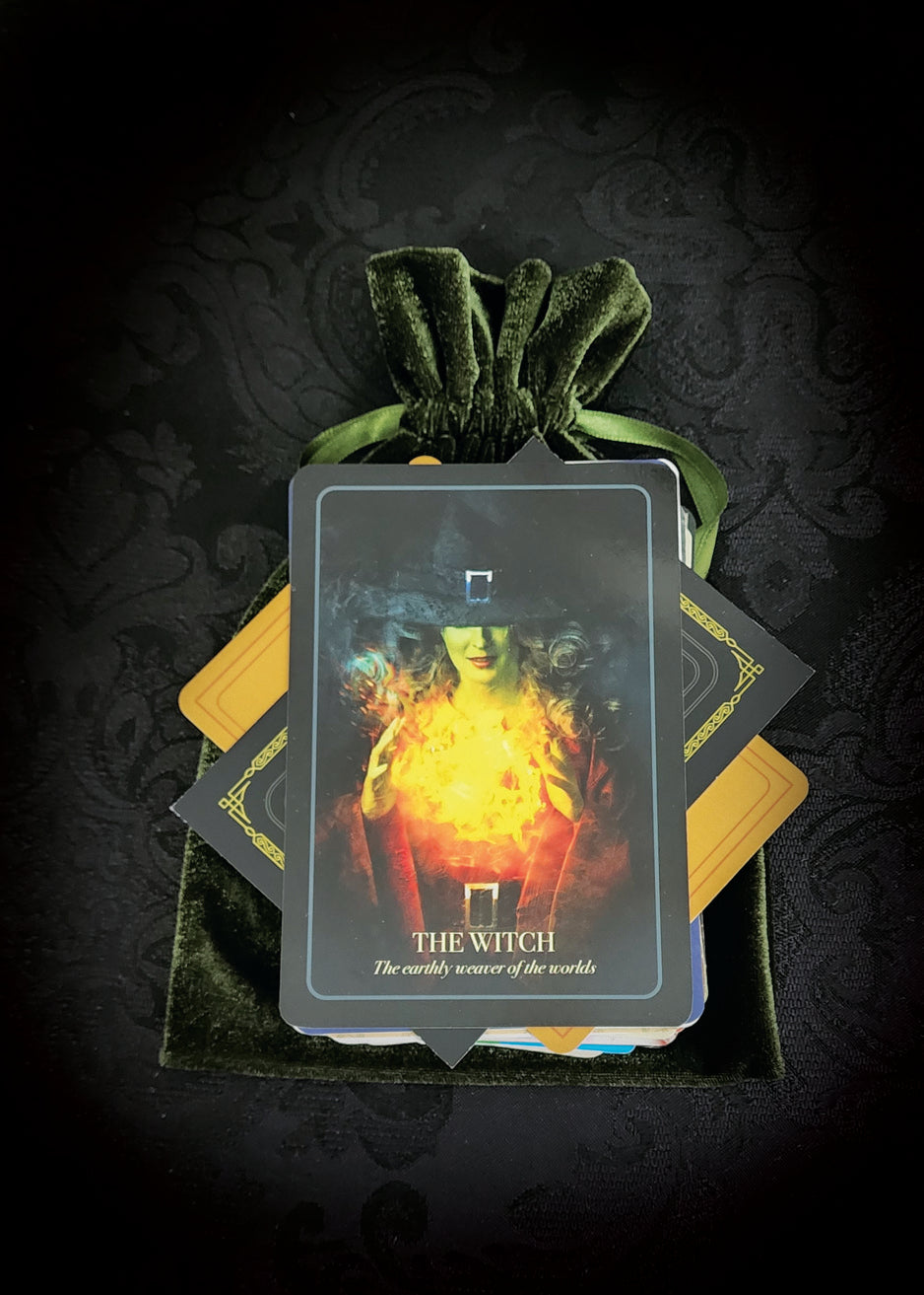 This incredible collection of 50 randomly selected Tarot and Oracle Cards comes in a soft and stretchy Green velvet bag. These cards are from all sorts of decks, some gently used, some brand new, some rare, and some regular. All cards are in good condition and the storage bag is brand new. What you see in the pictures is the exact collection that you will receive - gift-wrapped as always!