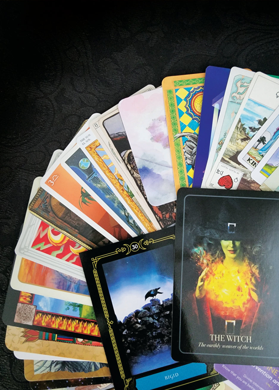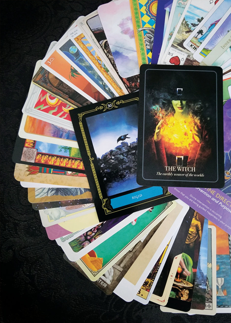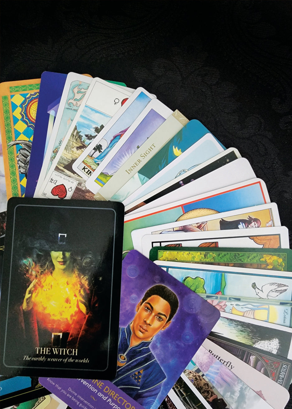 This incredible collection of 50 randomly selected Tarot and Oracle Cards comes in a soft and stretchy Green velvet bag. These cards are from all sorts of decks, some gently used, some brand new, some rare, and some regular. All cards are in good condition and the storage bag is brand new. What you see in the pictures is the exact collection that you will receive - gift-wrapped as always!