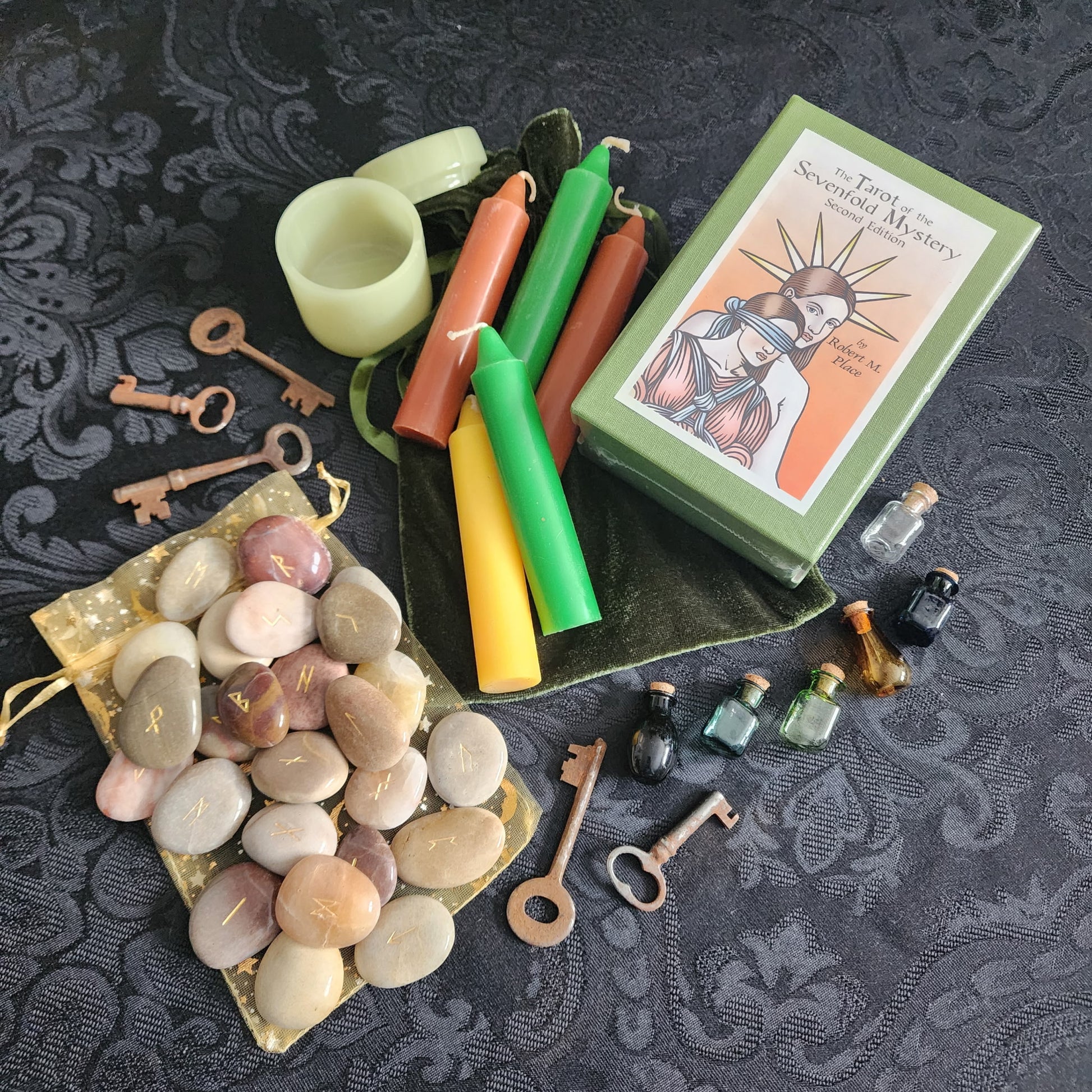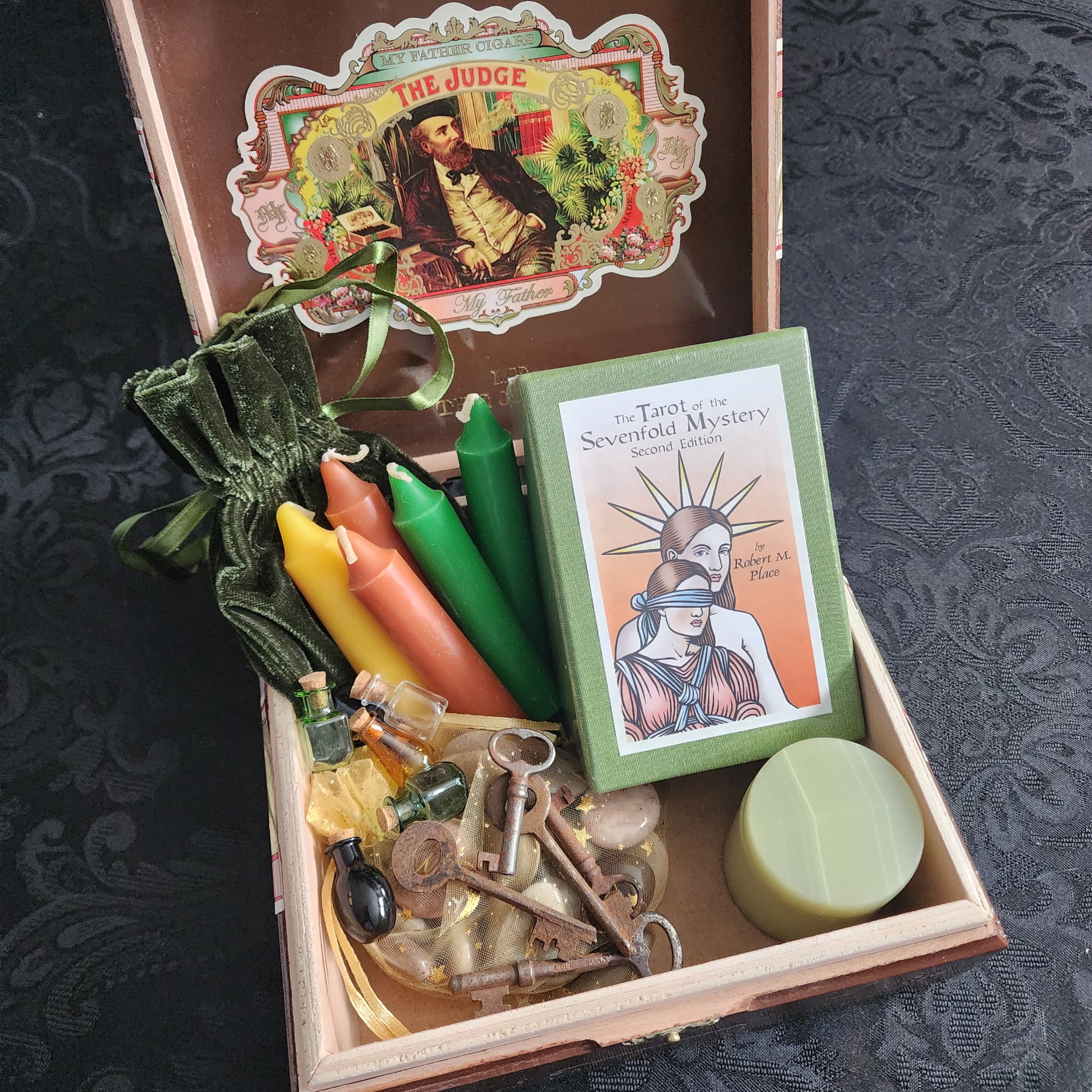 A grounded earth-witch ritual box rooted in wisdom, patience, and ancestral strength. This collection feels like something gathered from forest floor and forgotten apothecaries — steady, protective, and deeply intuitive.