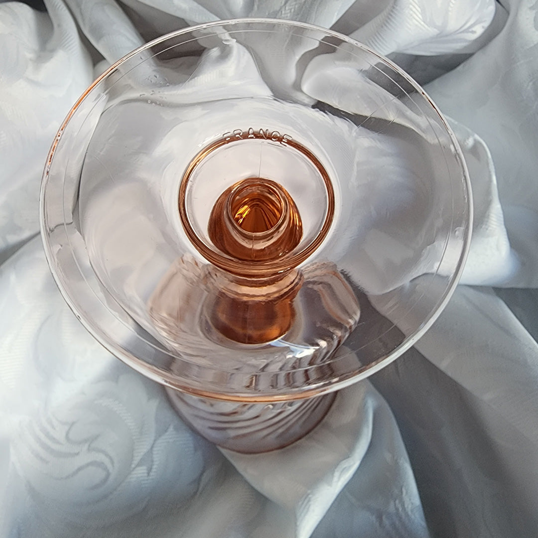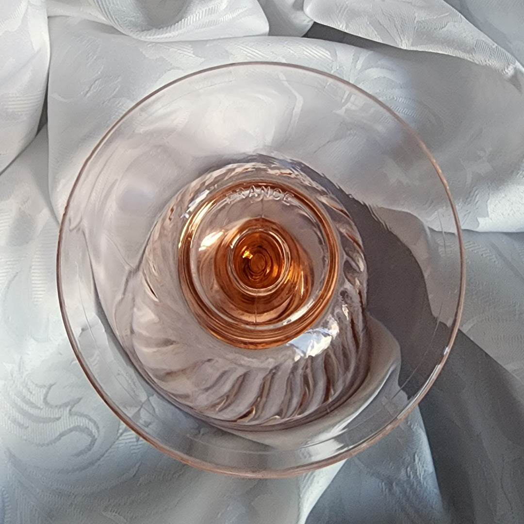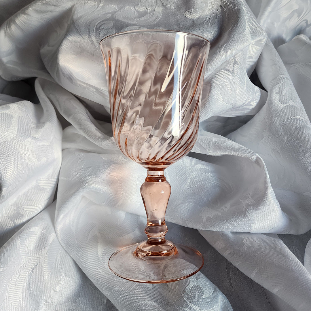 This lovely pale pink goblet was manufactured by Cristal D'arques-Durand and the pattern is Rosaline Swirl Optic. This delicate drinking vessel is just over 6 inches tall and 3 inches round at the top, and is perfect for Love Spells, Feminine Altars, and enjoying your favorite beverage! In very good, vintage condition, this goblet is free of chips, cracks and flea bites.