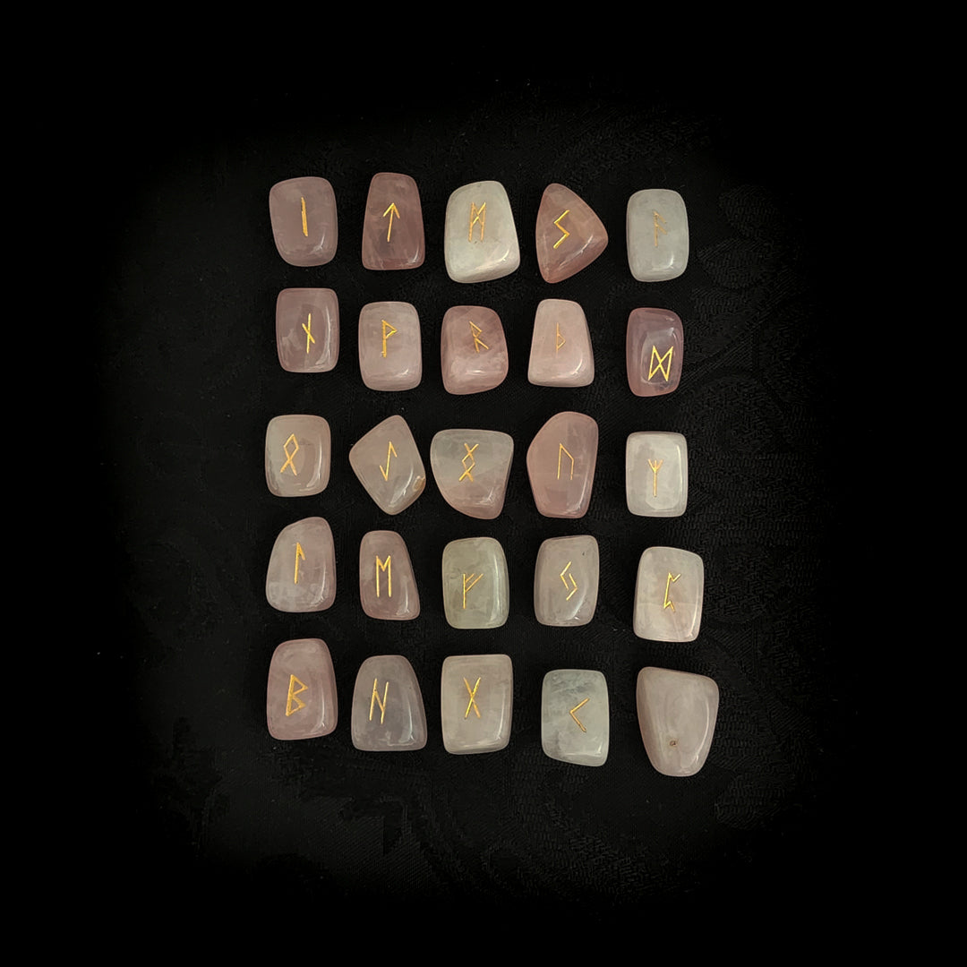 This stunning set of Elder Futhark rune stones is expertly carved into natural Rose Quartz, polished to perfection, and embellished in golden paint. All of the stones are a lovely light pink making this the perfect set for the romantic, poet, or dreamer on your list. Get the soothing effect of rose quartz while using one of the oldest and most unique divination systems on the