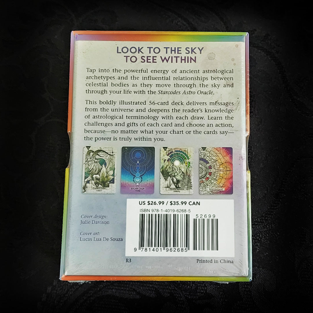 Tap into the powerful energy of ancient astrological archetypes and the influential relationships between celestial bodies as they move through the sky and through your life with the Starcodes Astro Oracle. This boldly illustrated 56-card deck delivers messages from the universe and deepens the reader's knowledge of astrological terminology with each draw. Learn the challenges and gifts of each card and choose an action, because - no matter what your chart or the cards say - the power is truly within you. This fabulous deck is brand new and sealed!