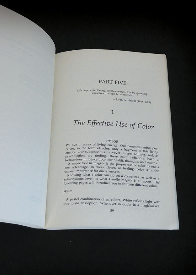 Candle Magick is one of the oldest and most potent systems of magick in human history. This wonderful book is believed to be the most thorough and comprehensive workbook on Candle Magick available, and it serves as a springboard to other systems of magick by teaching the why and how of magick in an easy, step-by-step process - and begins where other works on the subject leave off. Too often ignored is why and how Candle Magick works, and this wonderful workbook covers these questions to ensure success and avoid common pitfalls. Perfect for practitioners at all skill levels, this previously loved softcover book is in very good condition with an old bookplate and very slight waft of incense but is otherwise free of rips, stains, tears, or markings.