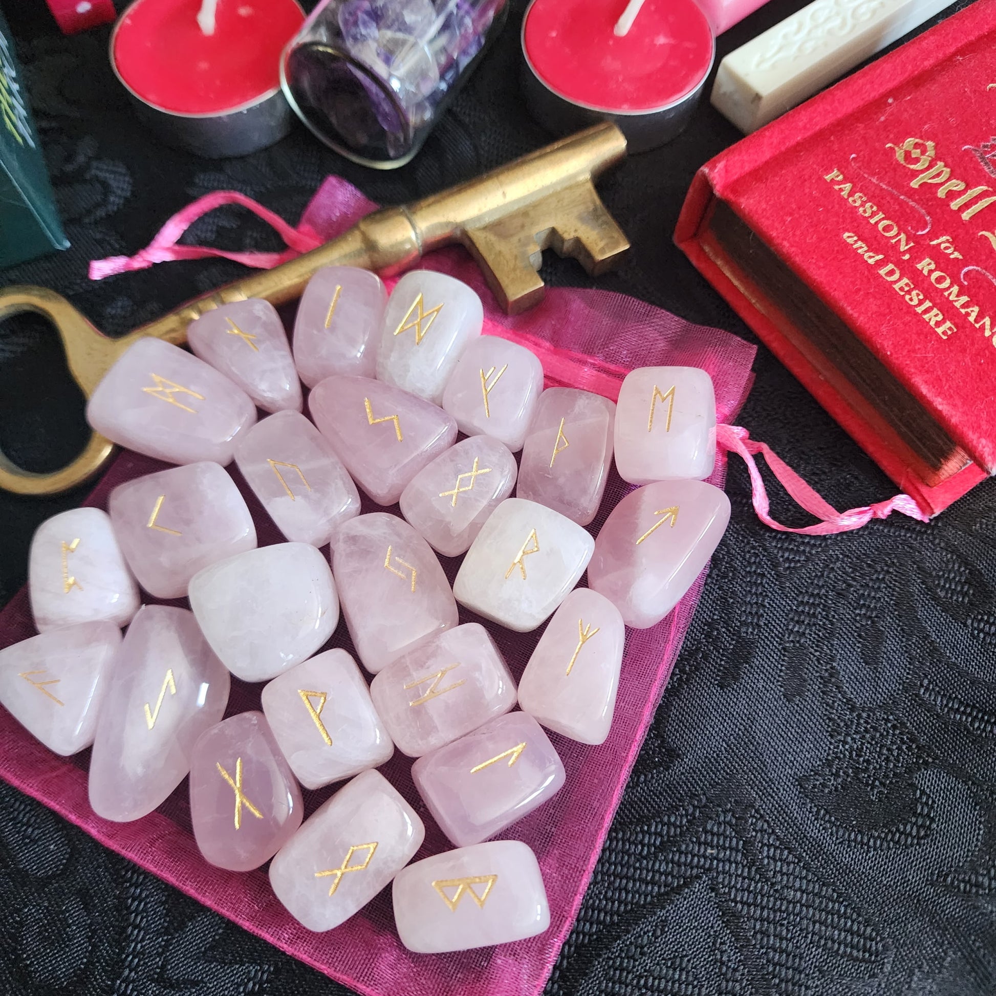 - Rose quartz rune stone set (TGS Gems)