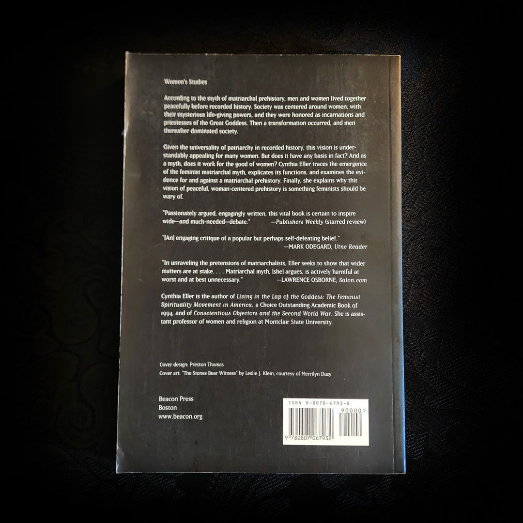 According to the myth of matriarchal prehistory, men and women lived together peacefully before recorded history. Society was centered around women, with their mysterious life-giving powers, and they were honored as incarnations and priestesses of the Great Goddess. Then a transformation occurred, and men thereafter dominated society. Given the universality of patriarchy in recorded history, this vision is understandably appealing to many women. But does it have any basis in fact? And as a myth, does it work for the good of women? Cynthia Eller traces the emergence of the feminist matriarchal myth, explicates its functions, and examines the evidence for and against a matriarchal prehistory. Finally, she explains why this vision of peaceful, woman-centered prehistory is something feminists should be wary of. This book is in good condition with some slight underlining on a few pages.